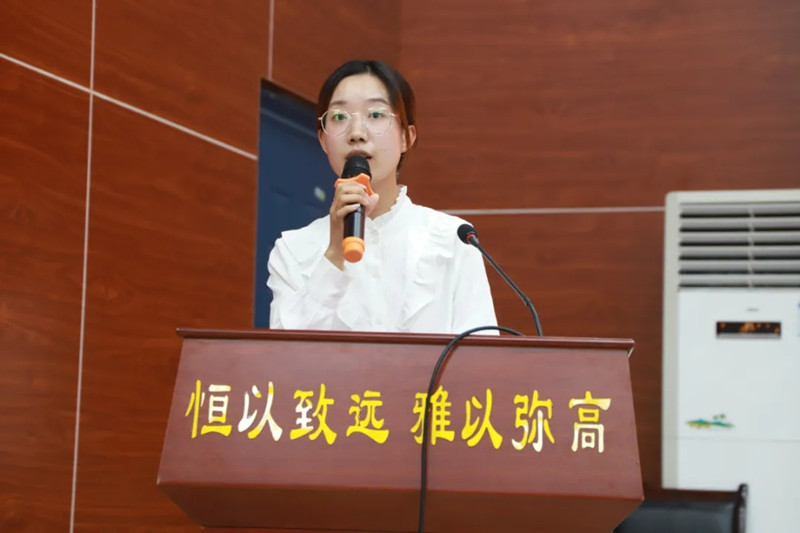 徒弟代表張興雨老師發(fā)言,她承諾一定會在自己的崗位上兢兢業(yè)業(yè),認真負責,堅守職業(yè)操守,立志做理想信念堅定,思想品德高尚,學識水平深厚的優(yōu)秀人民教師,在職業(yè)的這條路上,不斷深入學習,永葆本心,貫徹習近平總書記的話語——“不忘初心,砥礪前行”。