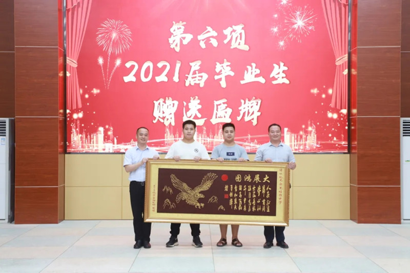 落其實者思其樹,飲其流者懷其源。我校2021屆畢業(yè)生楊祖峰同學將“大展宏圖”牌匾送到校領(lǐng)導手中,表達培育感激之情。
