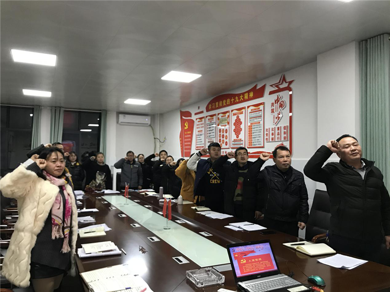 謝向前同志領誓,全體黨員重溫入黨誓詞,會議在合唱《沒有共產黨就沒有新中國》的歌聲中順利結束。