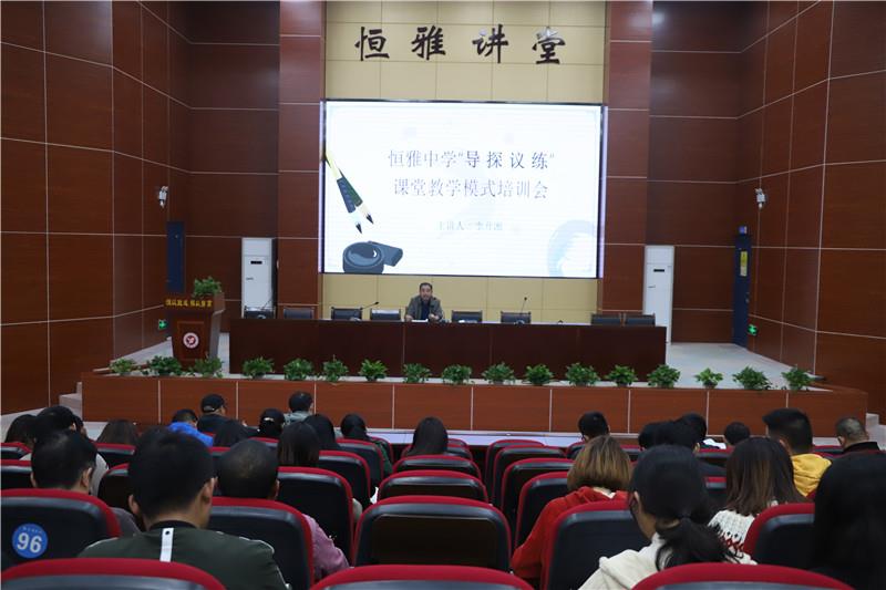 李校長(zhǎng)在培訓(xùn)會(huì)上向老師們介紹了“導(dǎo)、探、議、練”的含義、特點(diǎn)及操作方式。他說到建立恒雅“導(dǎo)、探、議、練”課堂教學(xué)模式的目的在于,讓我們的學(xué)生真正的“動(dòng)”起來,讓我們的課堂“活”起來,讓我們的學(xué)生“聰慧靈動(dòng)”起來。