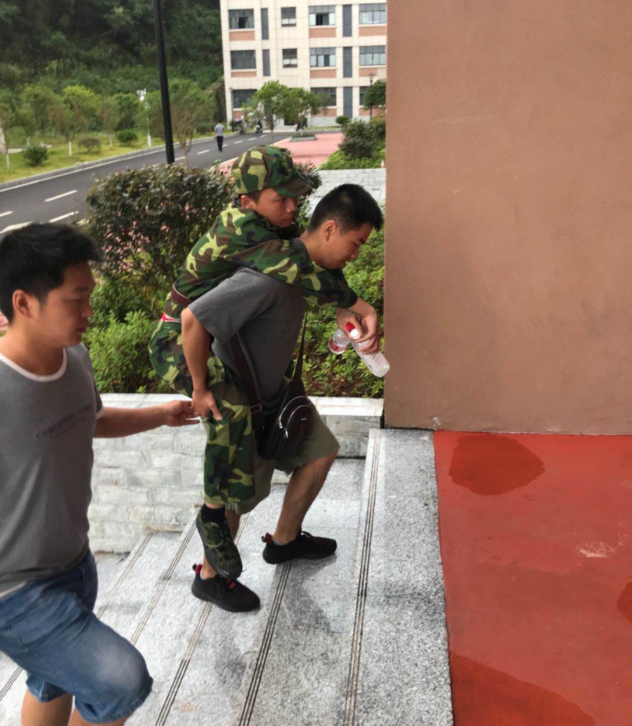 老師攙扶著身體不適學(xué)生