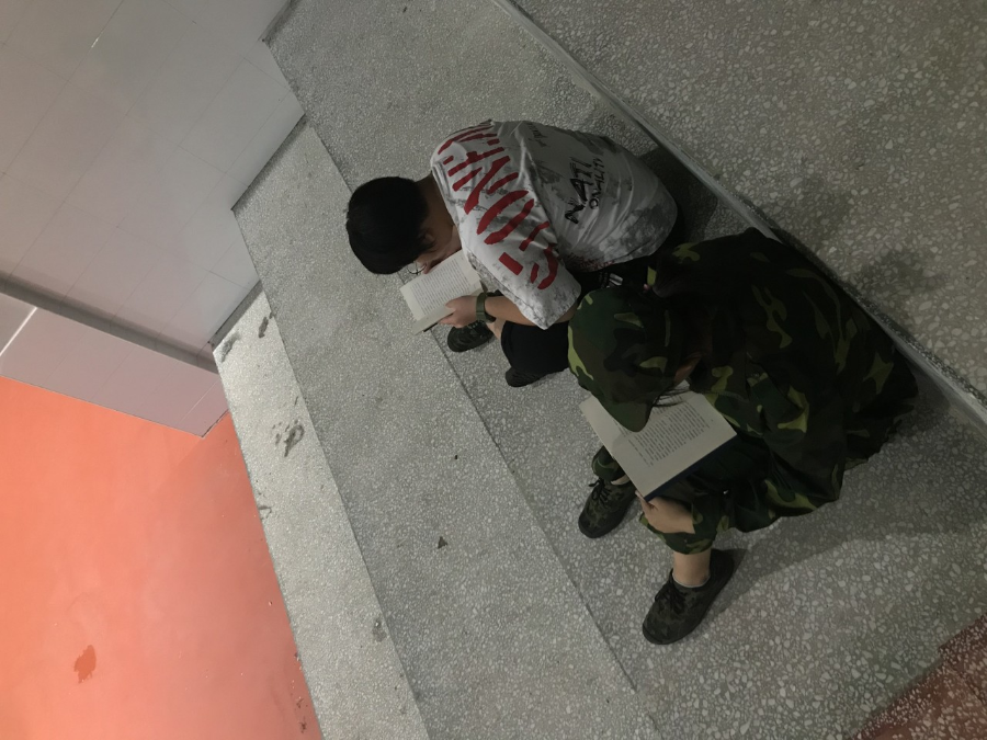 記得在風(fēng)雨籃球場,看見那幾位抱著書的學(xué)子。不知道是什么原因,他們沒有參加軍訓(xùn),但是安靜地坐在一旁,認(rèn)真看書的他們,顯得格外可愛。