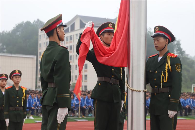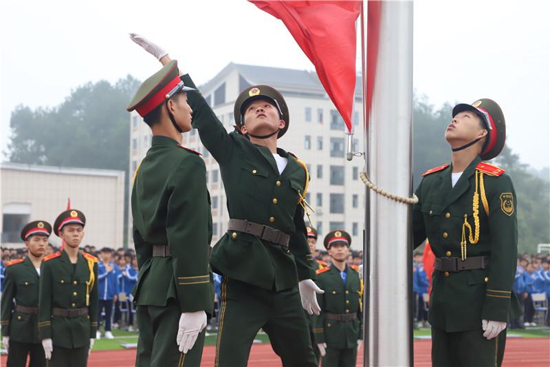 在雄壯的國歌聲中,五星紅旗冉冉升起。全體師生的目光追隨著緩緩上升的五星紅旗,堅(jiān)定的眼神里是驕傲,是自豪,是未來,是希冀。