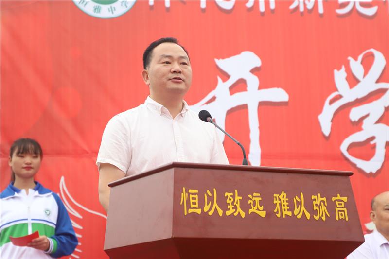恒雅中學(xué)執(zhí)行理事長謝向前,校長李開湘,副校長吳希安,校長助理兼學(xué)生處主任龍永洪,教科室主任鐘介文,教務(wù)處主任周尚軍及全校師生參加典禮,典禮由寧靖翔老師、楊小櫻同學(xué)主持。全校34個(gè)班級(jí),2400余名師生參加了本次典禮。